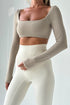 Senza tempo, perché conservato in uno stile classico ed elegante, ma allo stesso tempo molto femminile, sexy e funzionale sport longsleeve, che completerà la stilizzazione, fornire comfort e calore durante le riunioni di primavera, serate estive, e, Formazione invernale, nonché passeggiate autunnali. È anche una grande soluzione per le lezioni di meditazione, yoga stretching o esercizi pilates. La parte superiore è corta, aderente al corpo e soprattutto ha una manica lunga e adiacente. In combinazione con i leggings, crea un set perfetto e una scollatura sottile ti farà sentire estremamente speciale.